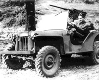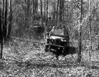 clip shows soldiers putting BRCs through their paces, and emphasizes the BRC's small size and rugged performance. The announcer remarks several times about the small size of the jeeps, and there's even a size comparison shot with an airplane. The car's versatility is also highlighted, including the reference, "mobile machine gun nest." Video 2: The second, shorter clip, contains footage of the famous jumping BRC towing an anti-tank gun over rough terrain in the Carolinas.