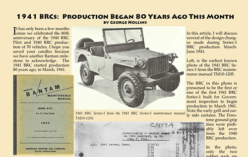 Read George Hollins' article on the 1941 BRCs, including detailed photos of design changes of the Series-1 vehicles, originally printed in the February-March 2021 issue of Rooster Tails, the journal of the Austin Bantam Society